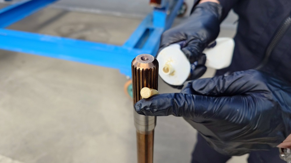 クラッチシャフトのスプラインに耐水グリスを塗布します。