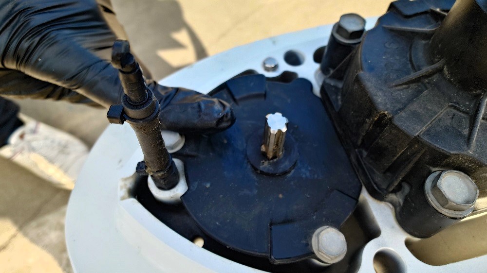 インペラの空回り防止のキーをペンチなどで抜き取ります。