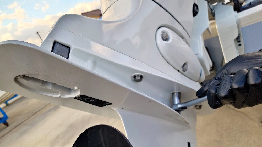 ㉙プレート上側・トリムタブフィン内のボルトを締める